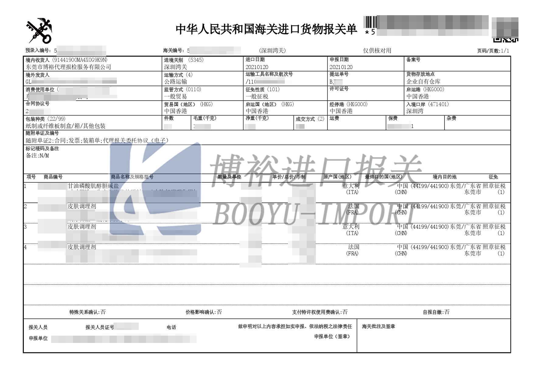 8、產(chǎn)品信息:品名、數(shù)量、包裝、重量及體積等;