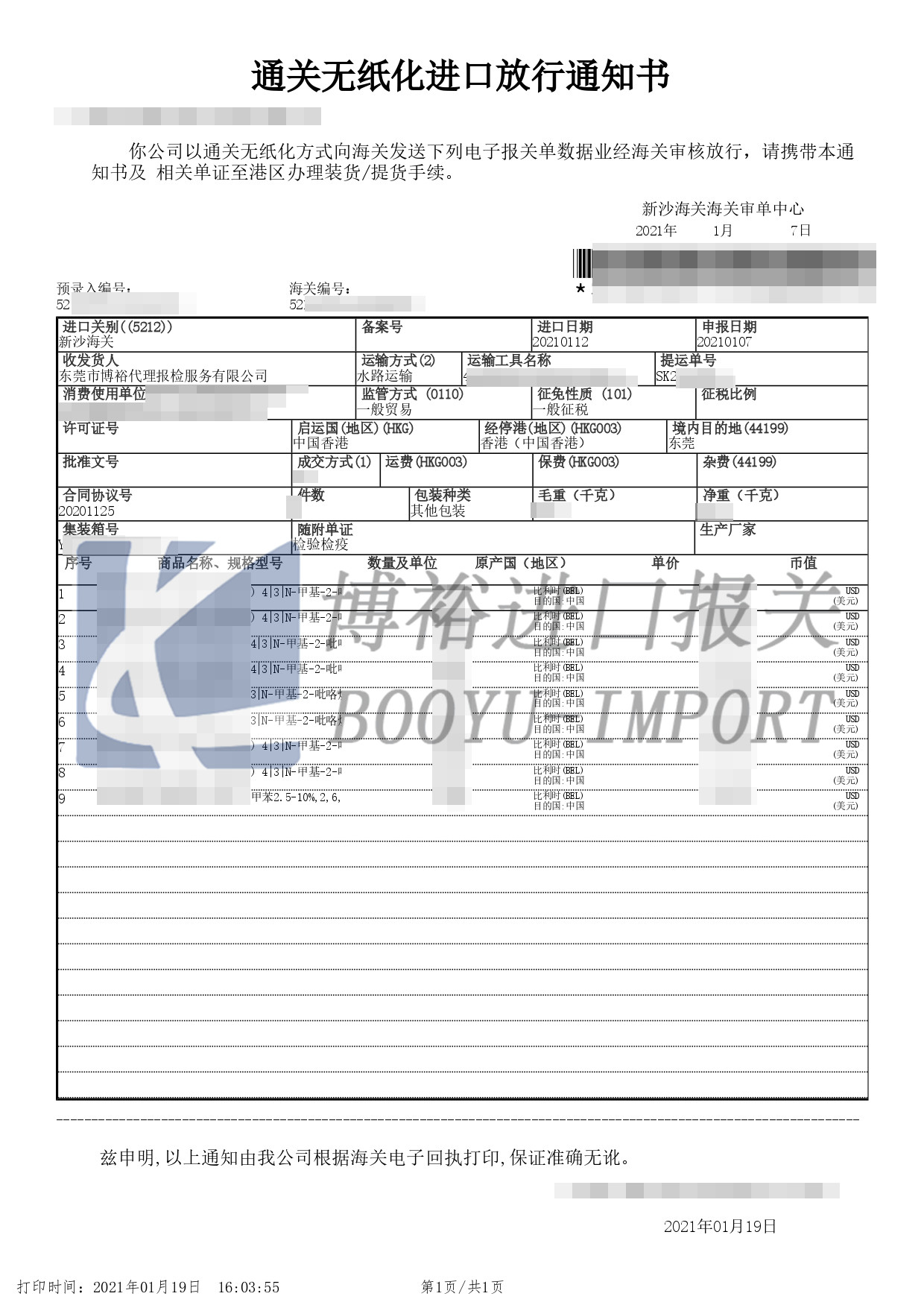 8、產(chǎn)品信息:品名、數(shù)量、包裝、重量及體積等;